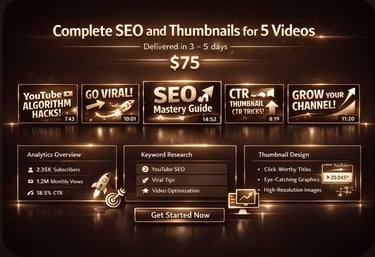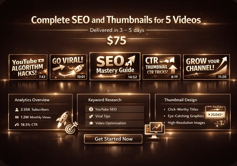 Complete SEO and thumbnails for 5 videos delivered in 3–5 days. 75$